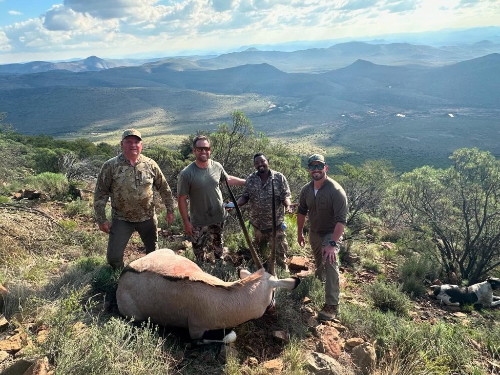 A gemsbok hunt often takes place in open terrain where stalking becomes a game of patience and distance management.